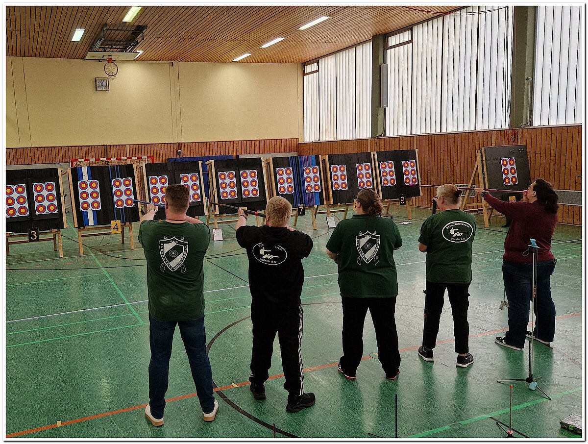 Vormittags: Schießen auf Ringscheiben mit jeweils 4 Pfeilen.