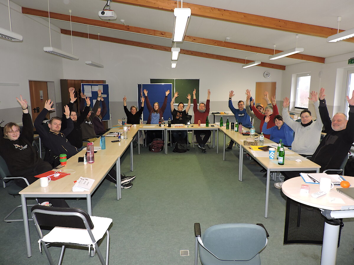 Sollte zwischendurch dennoch einmal die Konzentration nachlassen, wusste insbesondere Martina Eckhardt Abhilfe zu schaffen: Mit kurzen sportlichen Aktivierungsübungen brachte sie die Gruppe schnell wieder in Schwung und sorgte für neue Energie im Seminarraum.