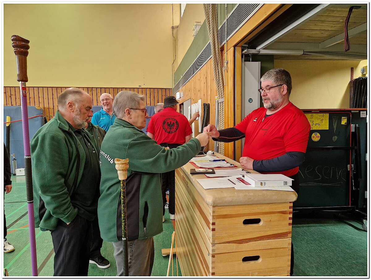 „Bei der Begrüßung konnte Blasrohrreferent Stefan Bergfeld auch den Bürgermeister der Stadt Itzehoe, Ralf Hoppe, willkommen heißen. Dieser zeigte sich erfreut, das Event live miterleben zu dürfen, da er zwar bereits von der aufstrebenden Sportart gehört hatte, sie jedoch noch nicht in Aktion gesehen hatte. Der Bürgermeister war sichtlich angetan: Er informierte sich in Gesprächen ausführlich über den Blasrohrsport und hielt das Geschehen auch fotografisch fest. Stefan Bergfeld bedankte sich bei ihm ausdrücklich dafür, dass die Stadt die Halle für die Landesmeisterschaft zur Verfügung gestellt hatte.