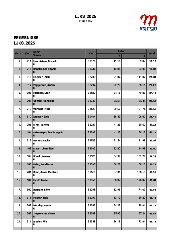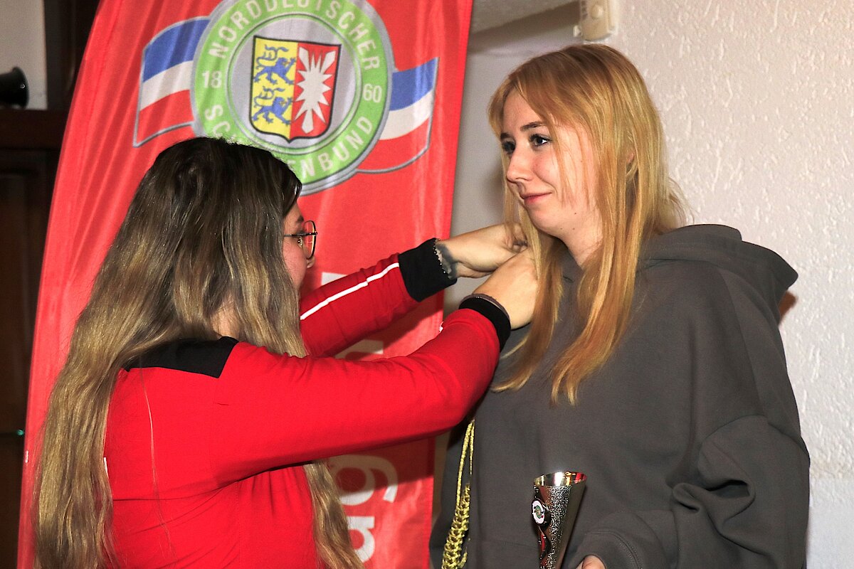 Auf die Plätze zwei und drei, mit nicht minder tollen Teilerschüssen ins Zentrum der Zehn, kamen Lea Sophie Beneke von den Lübecker Sportschützen. Bei ihr war der 19. Schuss, mit einem Teiler von 12,08 der beste und sie errang damit den ersten Ritter.