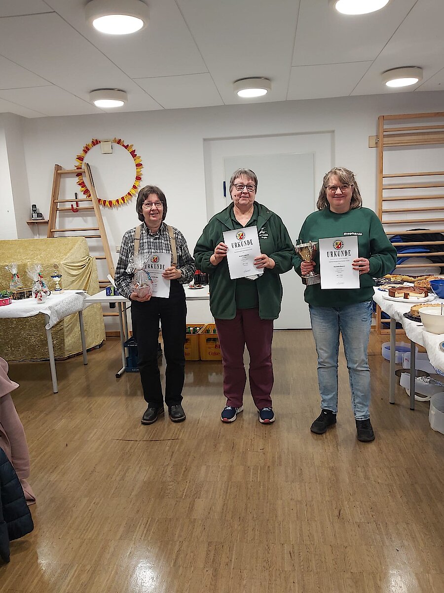 Mannschaft 3 erreichte Platz Nummer 13 mit den Schützinnen Karen Broßat (609,9 Ringe), Vera Wegener (626,3 Ringe), Anna Wegner (629,7 Ringe) und Christiane Neuschl (623,2 Ringe). Mannschaft 2 hatte leider einen personellen Ausfall und ging daher nur mit 3 Damen an den Start: Elke Radmacher (627,6 Ringe), Andrea Conrad (619,5 Ringe) und Aksana Dell (617,8 Ringe).
